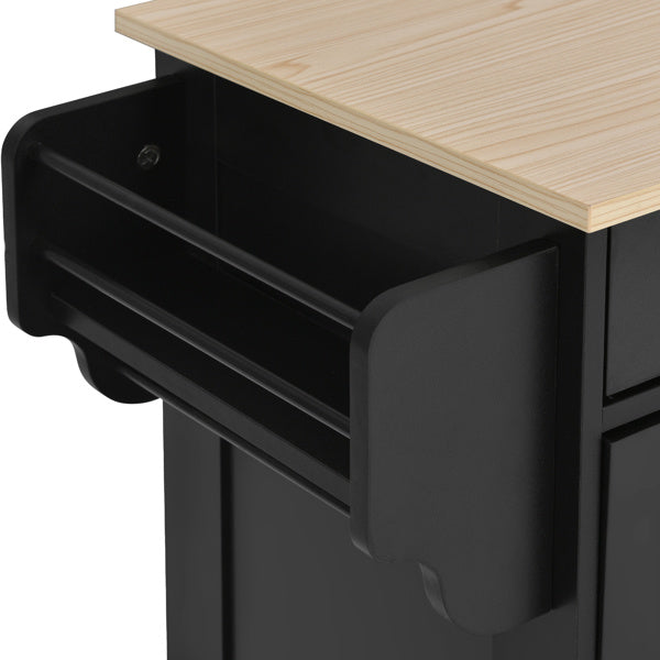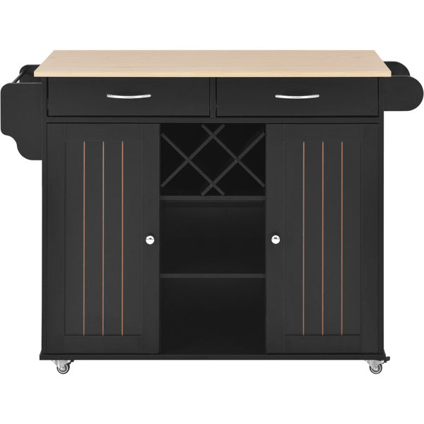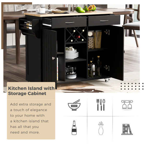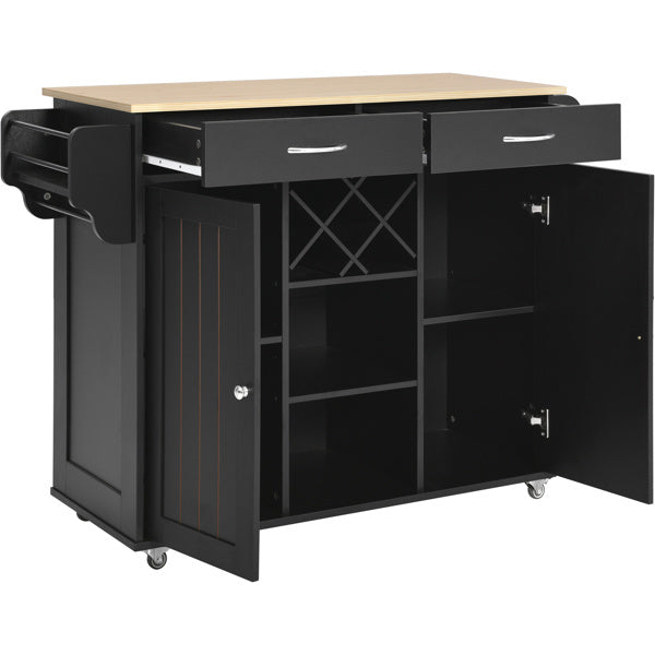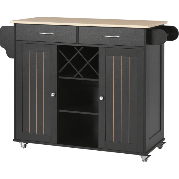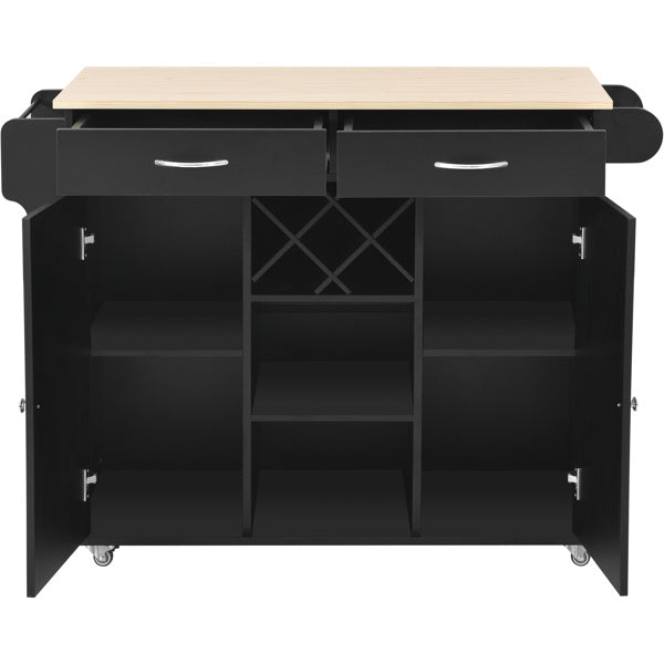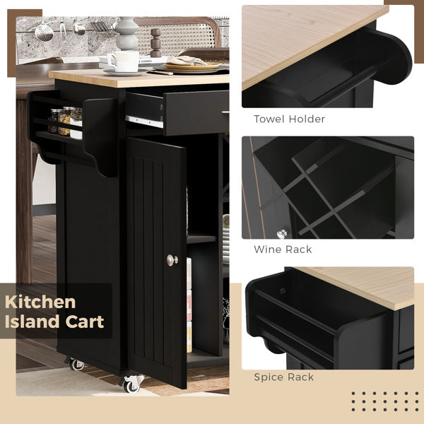 Kitchen Island Cart with Two Storage Cabinets and Four Locking Wheels; Wine Rack; Two Drawers; Spice Rack; Towel Rack