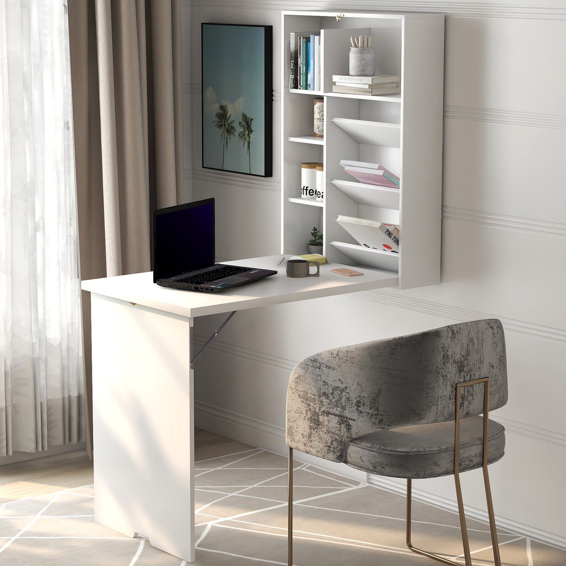 Product Features: We combine the desk and the bookcase. When you need to use the desk, just open the upper fasteners and put it down to use it as a desk. The space inside is also considerable. Books you usually read can be placed inside.Save a lot of living space for your family.