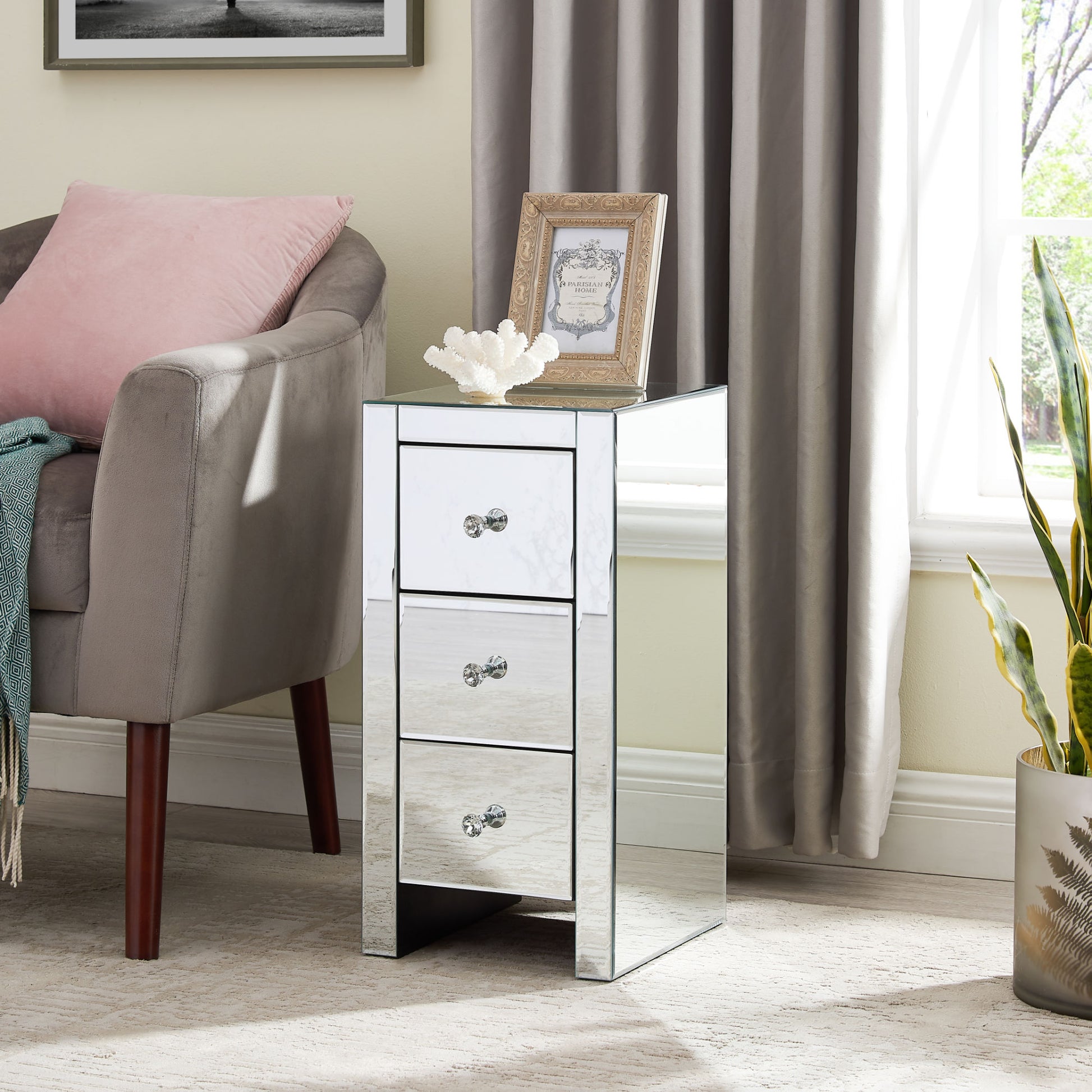 Mirrored Nightstand End Tables with 2/3/4-Drawer, Silver Modern Beside Table, Mirror Accent Side Table for Bedroom, Living Room