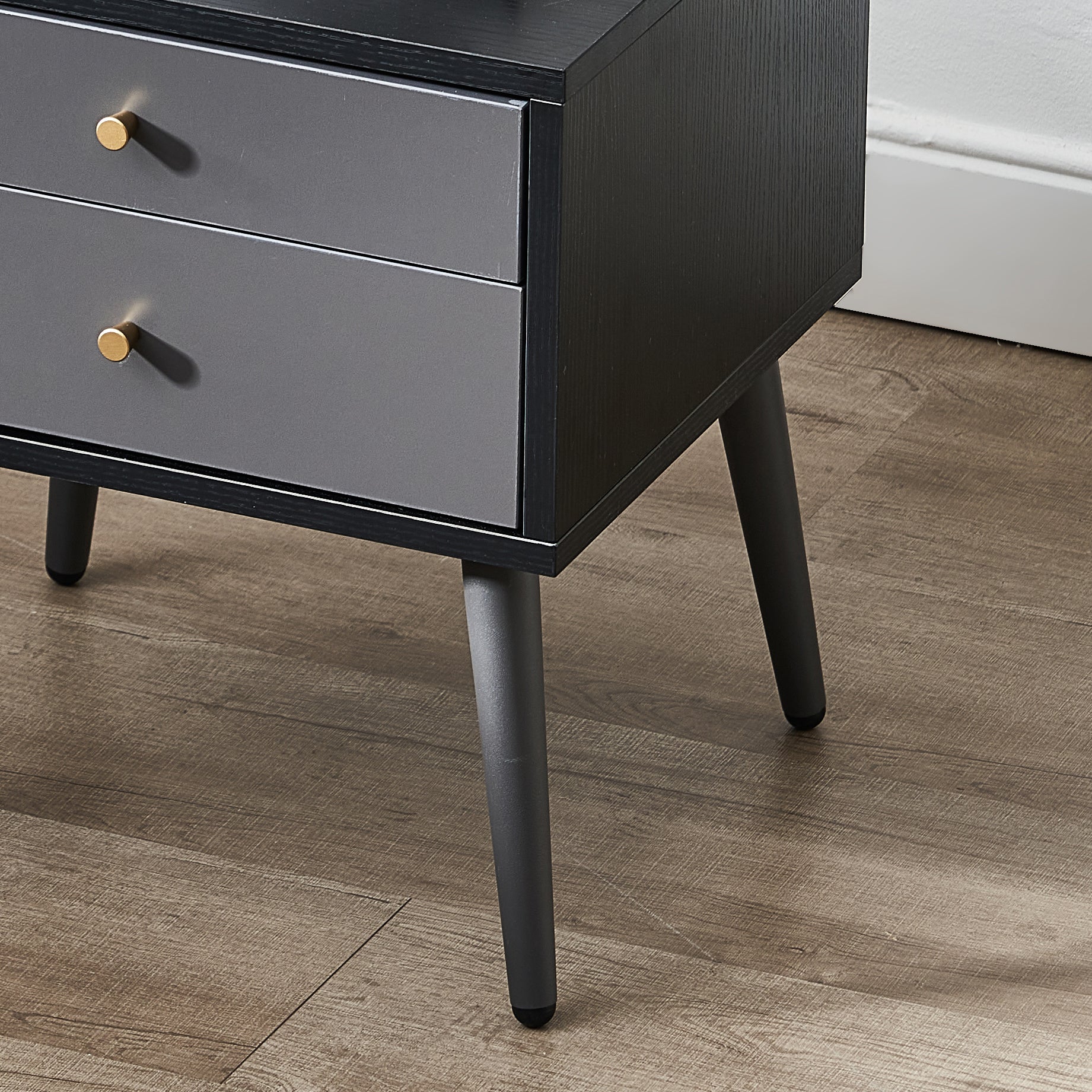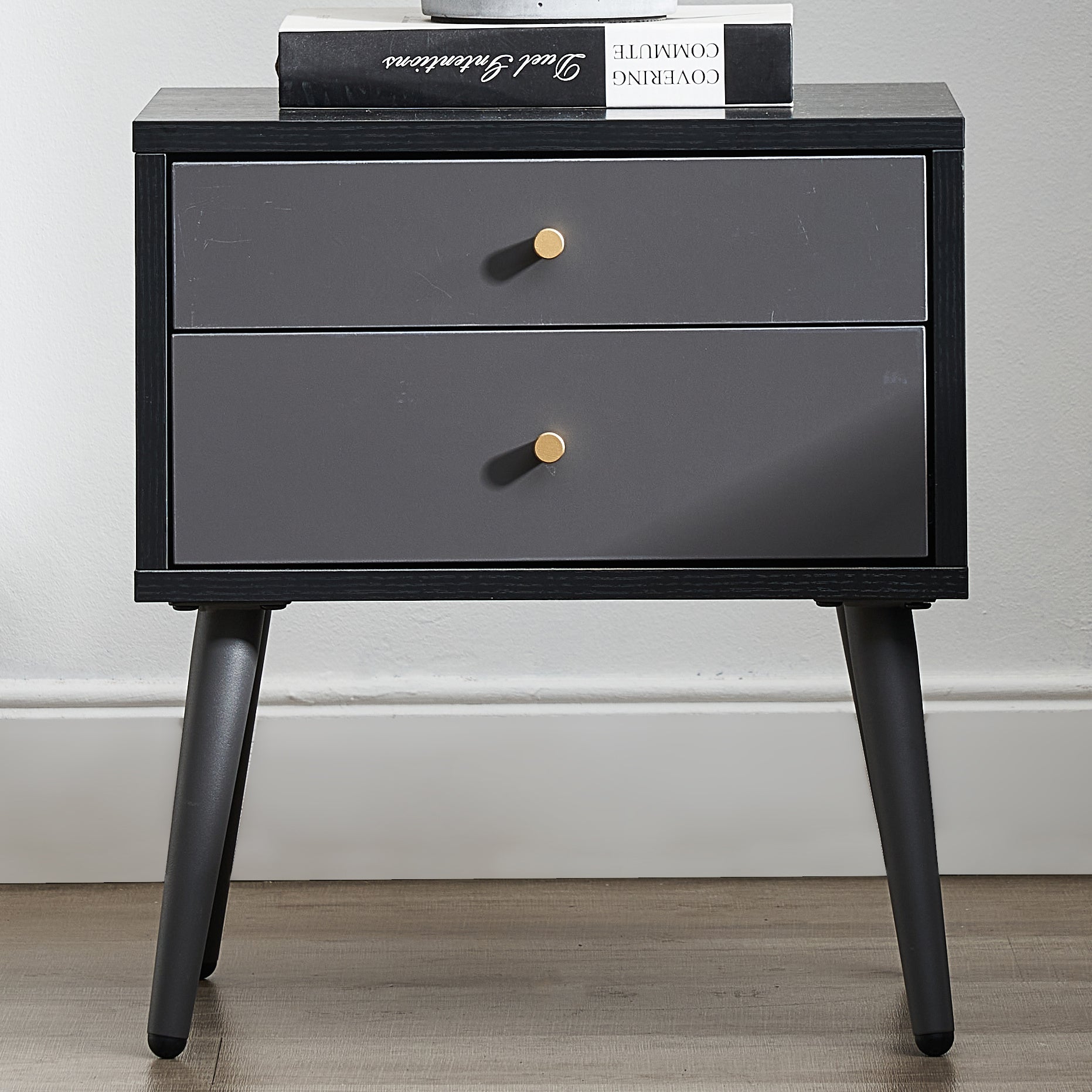 Features:Perfect design - solid matte black steel legs and strong shelves have a rustic appearance that makes this eye-catching bedside table stand out.Spacious storage space - the table top is used to store lights, alarm clocks, books, glasses, bedside table and drawers, sundries, accessories, trinkets, toiletries, blankets, bed sheets, cosmetics, baby clothes, underwear, socks, instruments, toys, blankets, knitted articles, etc.Widely used - This modern nightstand table is small in size and easy to move. It is ideal for bedrooms, apartments, dormitories and other places with limited space.Removable drawer - convenient handle and quiet opening and closing - when not in use, the removable drawer is flat and easy to store.Simple assembly - don't worry about cumbersome installation steps and a large number of indistinguishable screws. You can save time after assembly because our bedside table with 2 drawers is easy to assemble. These instructions are easy to follow.Quality assurance - rest assured to buy, we will provide every customer with professional pre-sales and after-sales service. If you have any questions about this product, please feel free to contact us.Specification: (two sets)Color: dark grayMaterial:MDFSingle size: 15.75 "L x 13.78" W x 17.72 "H (40x35x45 cm)Net weight: 18kgGross weight: 19.5kg