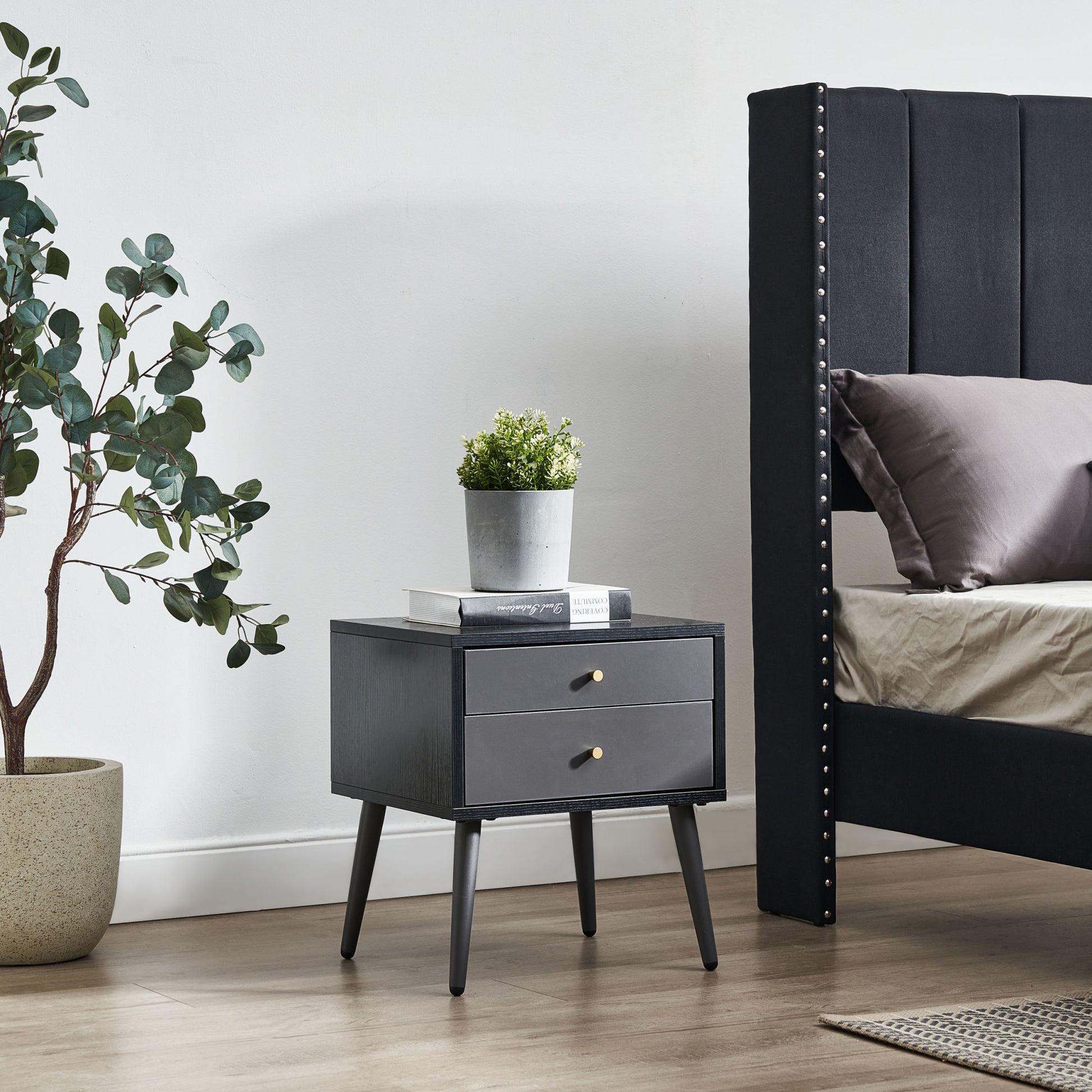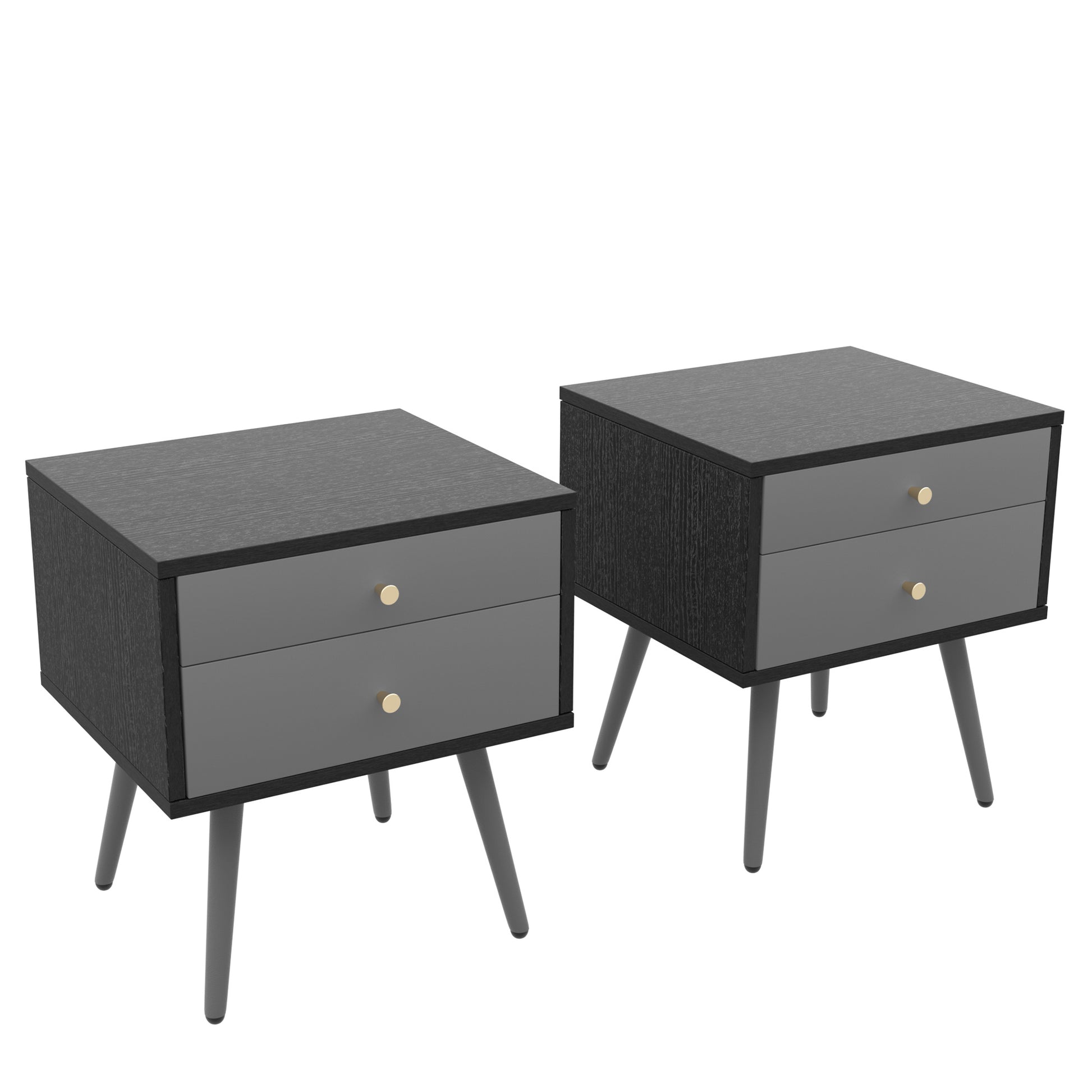 Modern Bedside Tables Set of 2,Nightstand with Storage Drawer -Chic Simple Assembly End Side Table,Sofa Table,for bedroom/living room/office (2 pcs,dark grey)